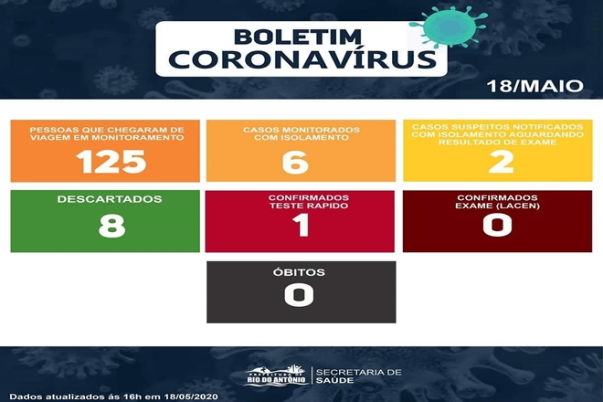 HOMEM TESTA POSITIVO PARA COVID-19 APÓS REALIZAÇÃO DE TESTE RÁPIDO EM RIO DO ANTÔNIO 19 de maio de 2020
