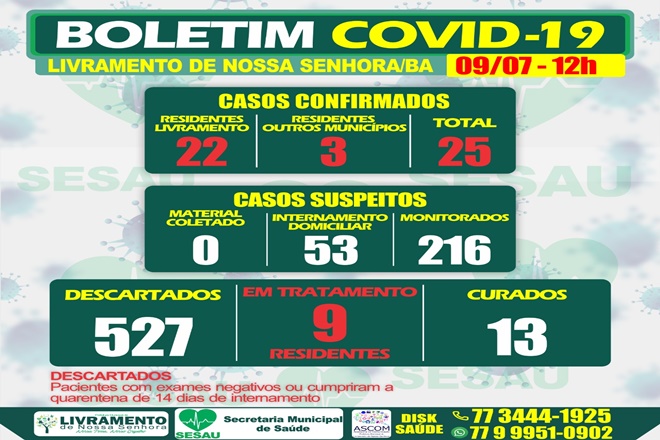 Brumado tem 188 pacientes curados da Covid-19; 56 pacientes em tratamento e nenhuma internação 10 de julho de 2020