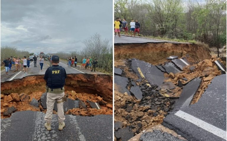 Trecho da BR-116 na Bahia é interditado após chuva provocar cratera na rodovia 23 de novembro de 2025