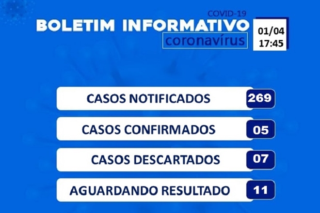 Brumado: Sobe para 5 os casos confirmados do novo coronavírus; notificações chegam a 269 2 de abril de 2020