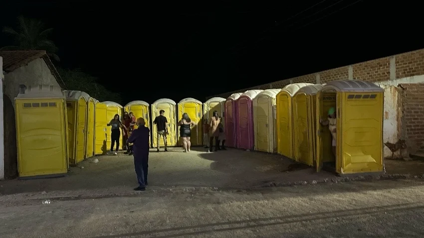 Banheiros químicos sem manutenção geram mau cheiro e incômodo ao lado do hospital durante São João em Dom Basílio 25 de junho de 2025