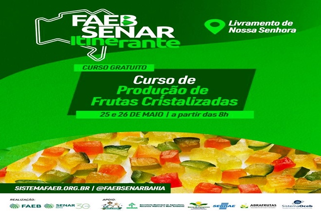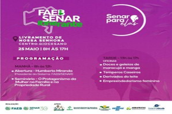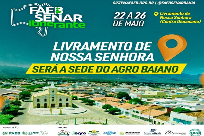 Entre os dias 22 e 26 de maio, Livramento de Nossa Senhora, na Chapada Diamantina, se tornará a cidade-sede do agro baiano, ao receber a primeira edição do Sistema Faeb/Senar Itinerante, que levará atendimento gratuito à população de toda região. A programação inclui cursos, palestras, seminários; dias de campo focados nas cadeias produtivas regional, a exemplo da bovinocultura leiteira, plantio intensivo da palma e manejo e produção eficiente de maga e maracujá; além do atendimento gratuito sobre temas ambientais, jurídicos, previdenciários, dentre outros.