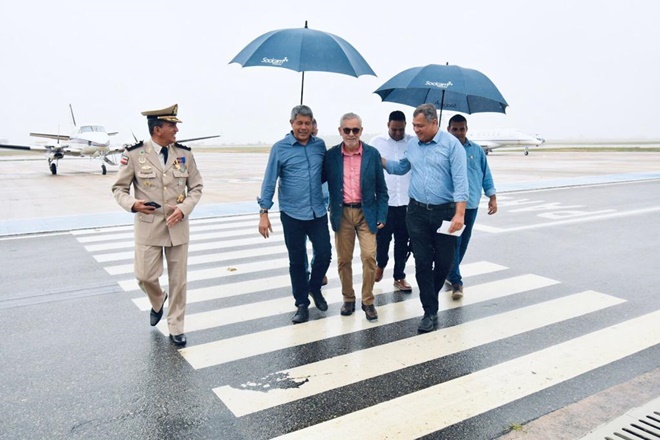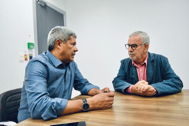 Ao desembarcar no Aeroporto Glauber Rocha, em Vitória da Conquista, o governador Jerônimo Rodrigues fez questão de se encontrar com o deputado federal Waldenor Pereira (PT), na manhã desta terça-feira (25), antes de seguir a caminho do município de Presidente Jânio Quadros para divulgar o programa Bahia Sem Fome. Eles aproveitaram para falar sobre as políticas municipal, estadual e nacional, quando o chefe do Executivo afirmou que retornará em breve para debater uma pauta específica sobre o projeto político para o município.