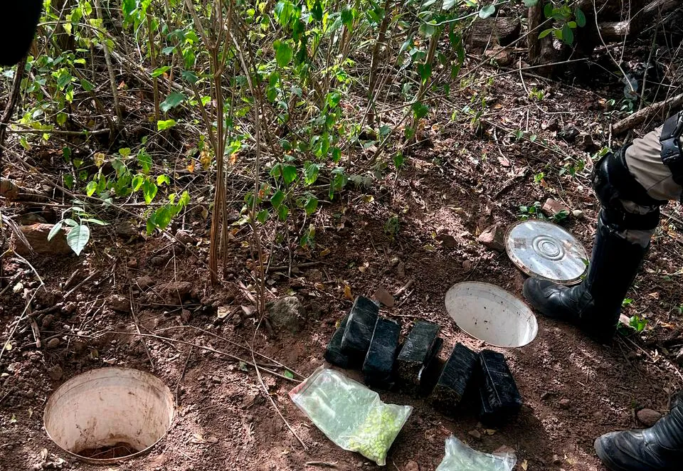 Ao chegarem ao local informado, os militares não encontraram quaisquer suspeitos, mas descobriram, no interior de um balde que havia sido enterrado, nove tabletes de maconha e duas sacolas com comprimidos. Todo material apreendido foi encaminhado para a 9ª Coorpin, onde a ocorrência foi registrada.