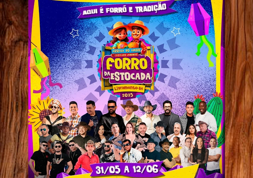 A Prefeitura de Livramento de Nossa Senhora, no sudoeste da Bahia, divulgou a programação oficial do tradicional Forró da Estocada, que acontece entre os dias 31 de maio e 12 de junho de 2025. O evento gratuito contará com uma série de grandes atrações do forró, reunindo diferentes estilos e prometendo animar o público durante toda a festa.