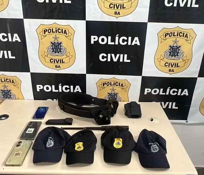 Durante o cumprimento de mandado de busca e apreensão em sua casa, localizada no distrito de São José de Itaporã, os policiais encontraram celulares, roupas com emblemas da Polícia Civil da Bahia, além de coldres e cintos táticos. *Com informações do g1